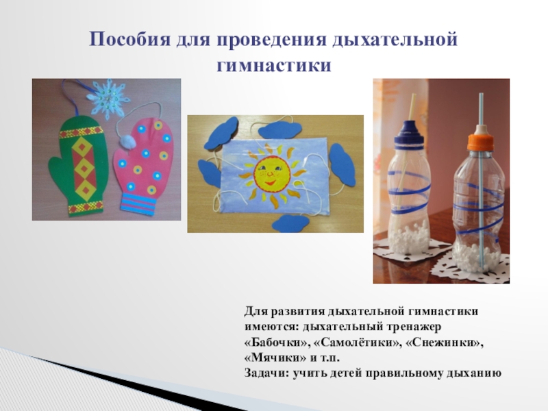Слайд 7Пособия для проведения дыхательной гимнастики