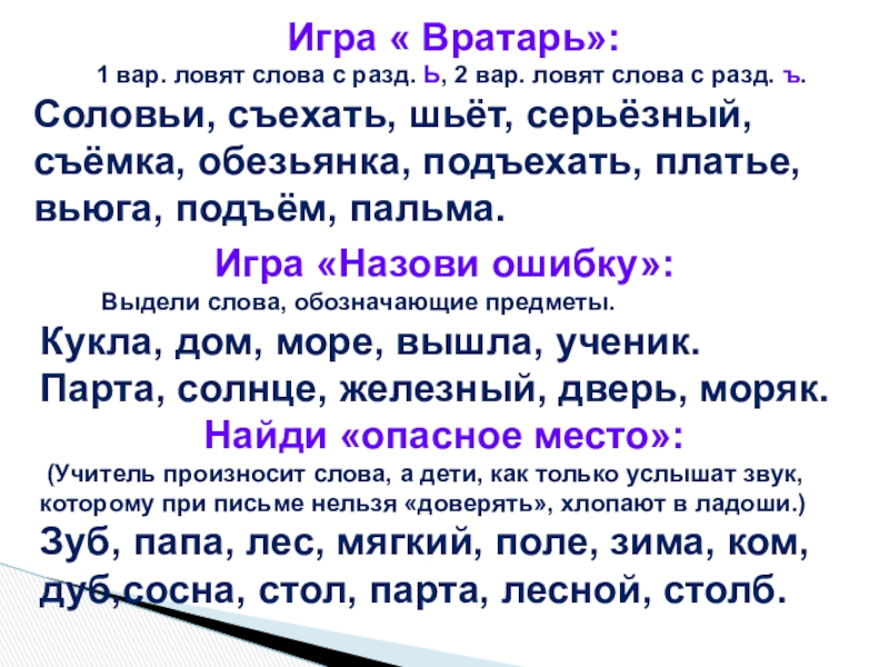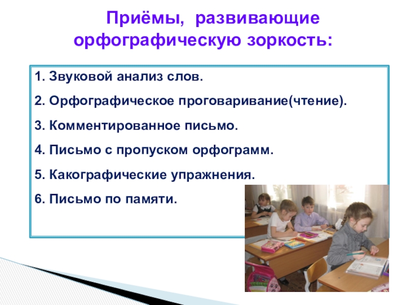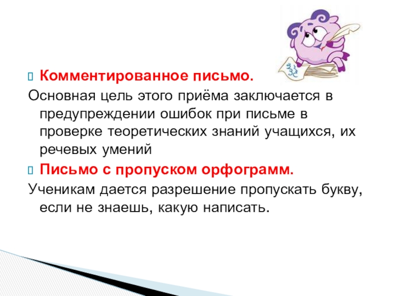Основная цель этого приёма заключается в предупреждении ошибок при письме