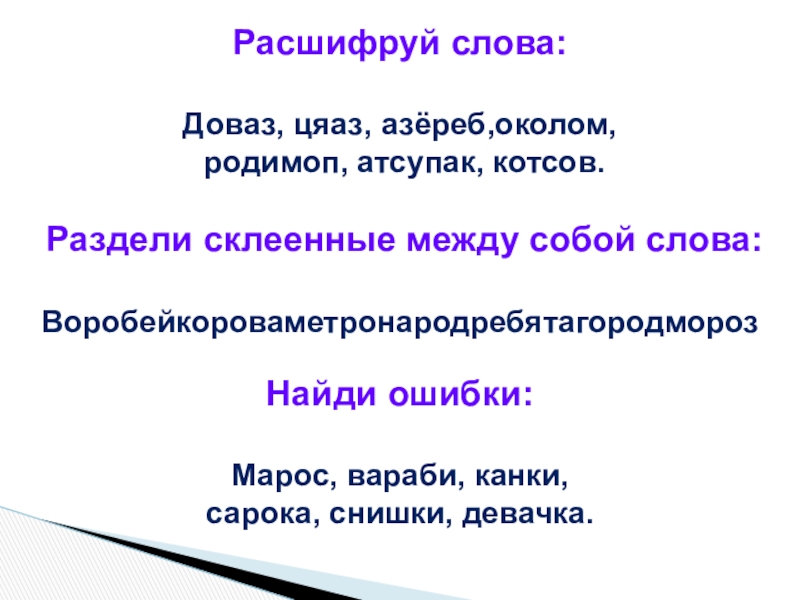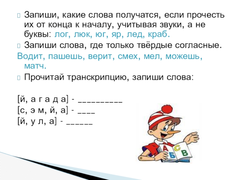 Слайд 11Запиши, какие слова получатся, если прочесть их от конца к началу,