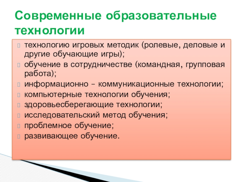 Слайд 5технологию игровых методик (ролевые, деловые и другие обучающие игры);