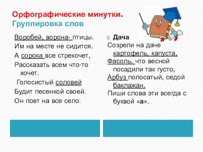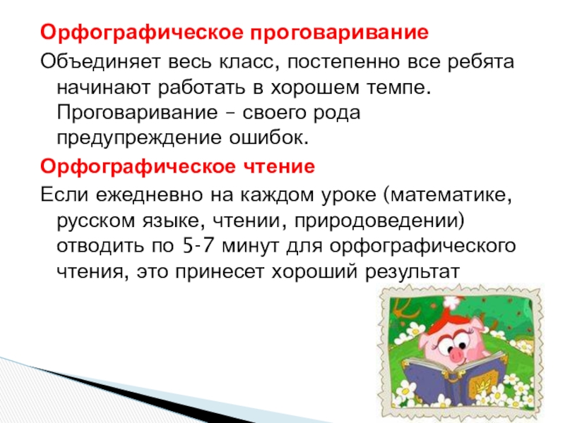 Если ежедневно на каждом уроке (математике, русском языке, чтении, природоведении) отводить по 5-7 минут для орфографического чтения, это принесет хороший результат