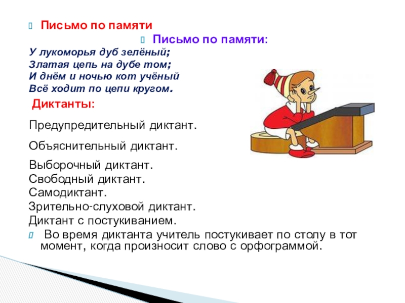 Во время диктанта учитель постукивает по столу в тот момент, когда произносит слово с орфограммой.