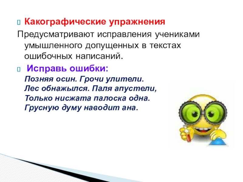 Предусматривают исправления учениками умышленного допущенных в текстах ошибочных написаний.