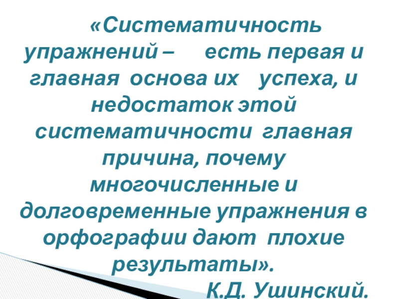главная основа их успеха, и недостаток этой систематичности главная причина, почему многочисленные и долговременные упражнения в орфографии дают плохие результаты».