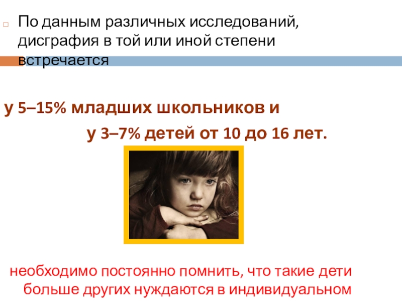 Слайд 8По данным различных исследований, дисграфия в той или иной степени встречается