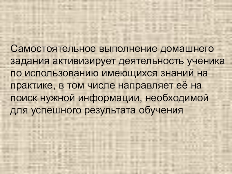 Самостоятельное выполнение домашнего задания активизирует деятельность ученика по использованию имеющихся знаний