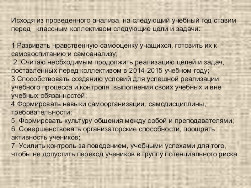 Слайд 11Исходя из проведенного анализа, на следующий учебный год ставим перед