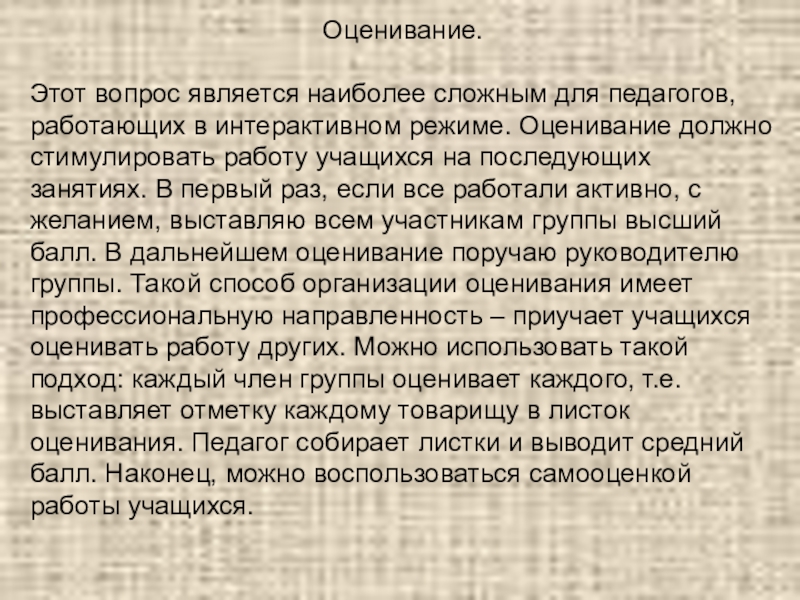 Этот вопрос является наиболее сложным для педагогов, работающих в интерактивном