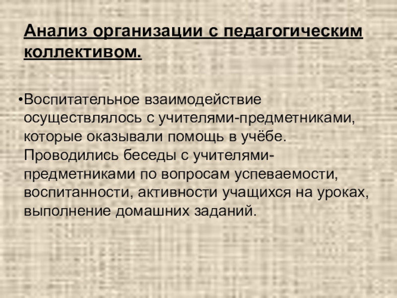 Воспитательное взаимодействие осуществлялось с учителями-предметниками, которые оказывали