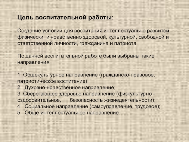 нравственно здоровой, культурной, свободной и ответственной личности, гражданина и патриота.