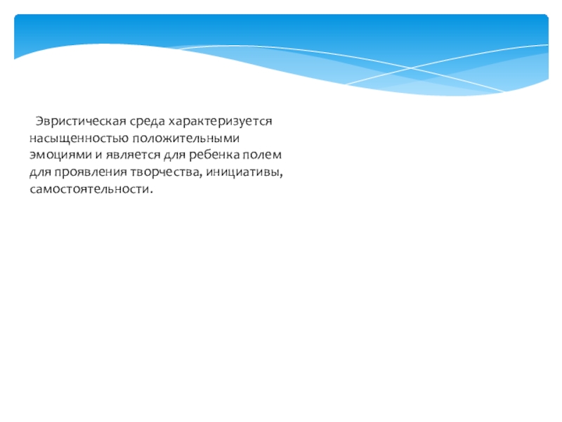 Слайд 8 Эвристическая среда характеризуется насыщенностью положительными эмоциями и является для ребенка полем
