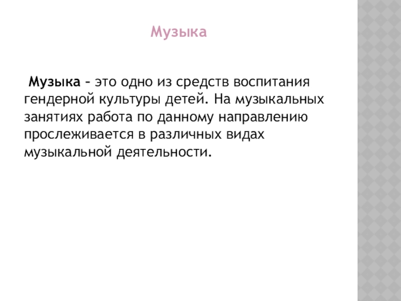 Музыка – это одно из средств воспитания гендерной культуры детей.