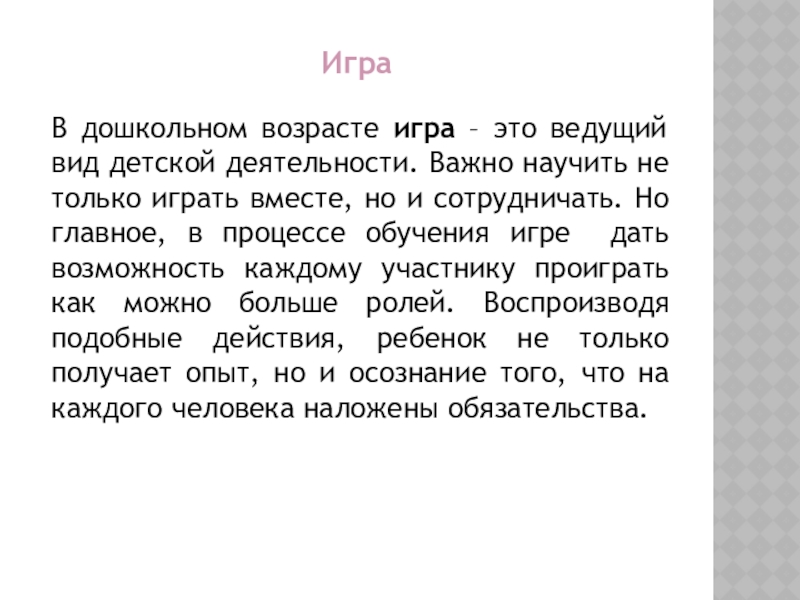 В дошкольном возрасте игра – это ведущий вид детской деятельности. Важно