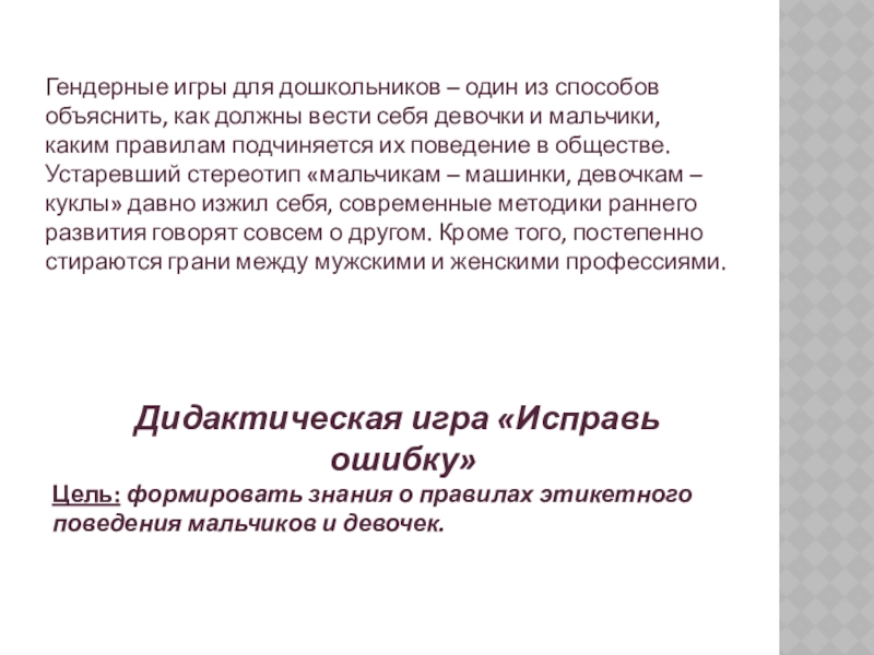 Слайд 9Гендерные игры для дошкольников – один из способов объяснить, как должны
