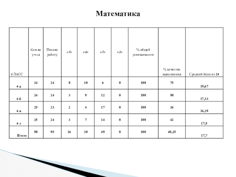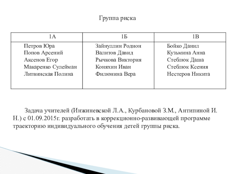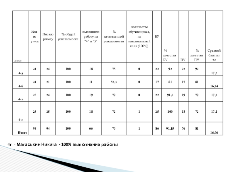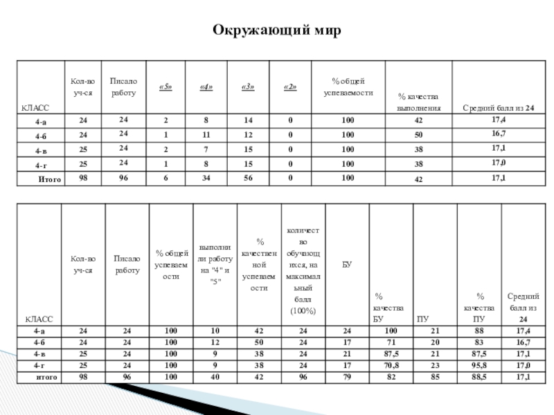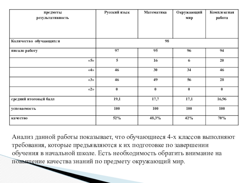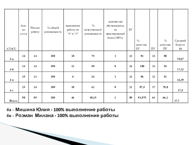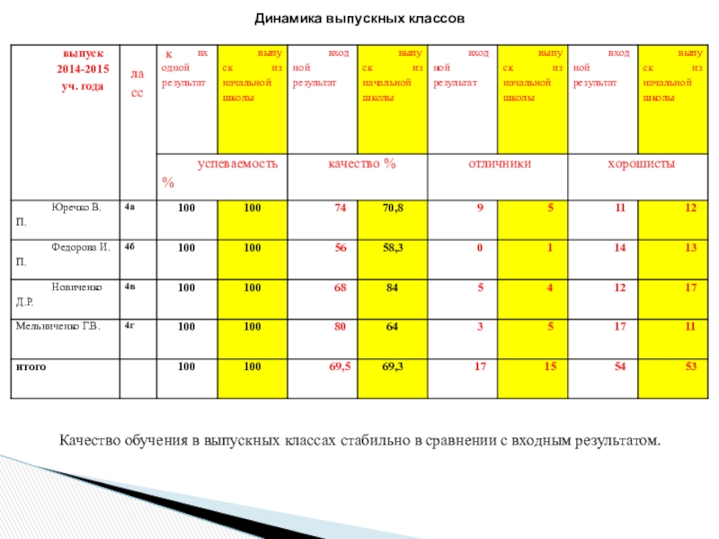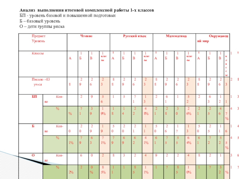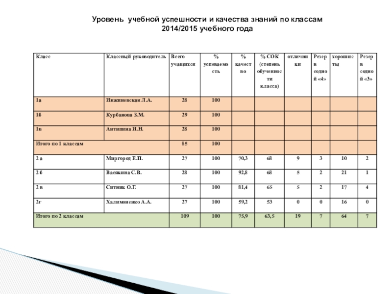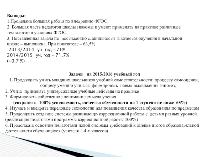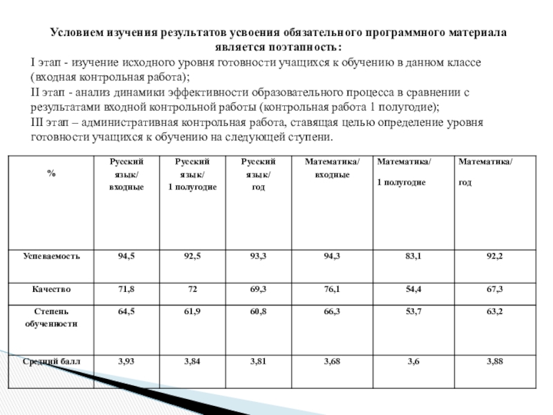 (сохранить 100% успеваемость, качество обученности на 1 ступени не ниже 65%)