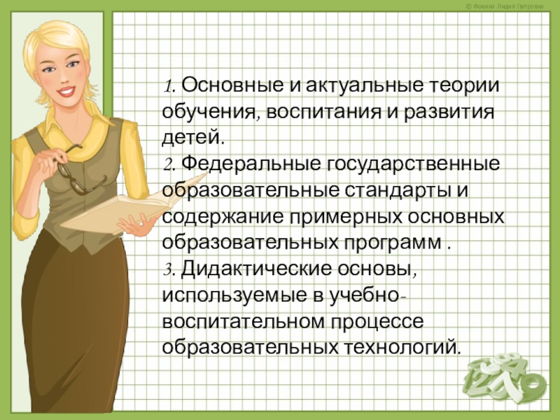 1. Основные и актуальные теории обучения, воспитания и развития детей. 2. Федеральные государственные образовательные стандарты