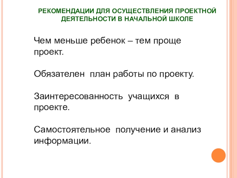 РЕКОМЕНДАЦИИ ДЛЯ ОСУЩЕСТВЛЕНИЯ ПРОЕКТНОЙ ДЕЯТЕЛЬНОСТИ В НАЧАЛЬНОЙ ШКОЛЕ