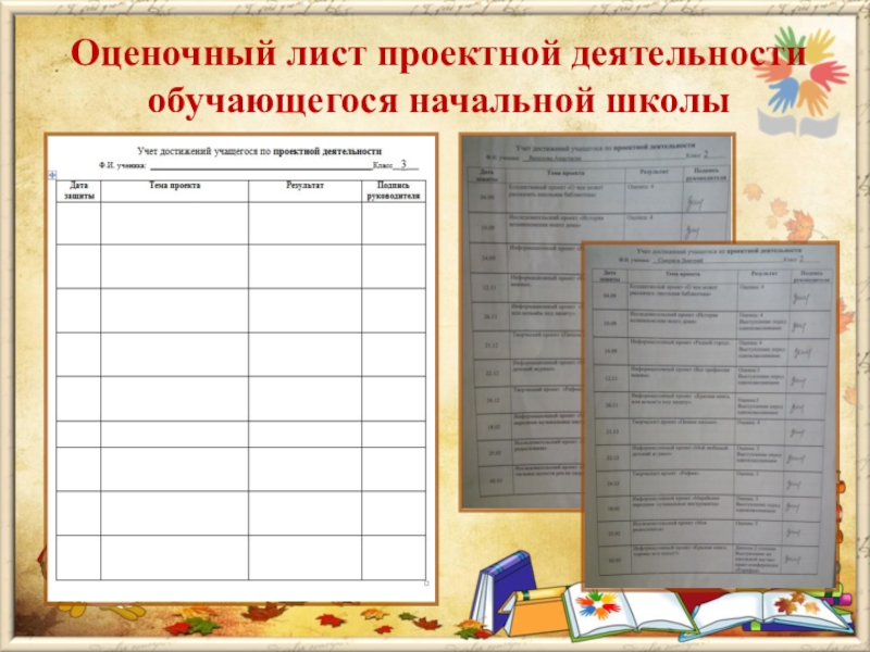 Слайд 20Оценочный лист проектной деятельности обучающегося начальной школы