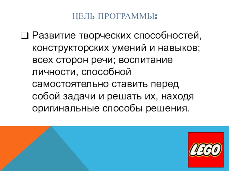 воспитание личности, способной самостоятельно ставить перед собой задачи и решать их, находя оригинальные способы решения.