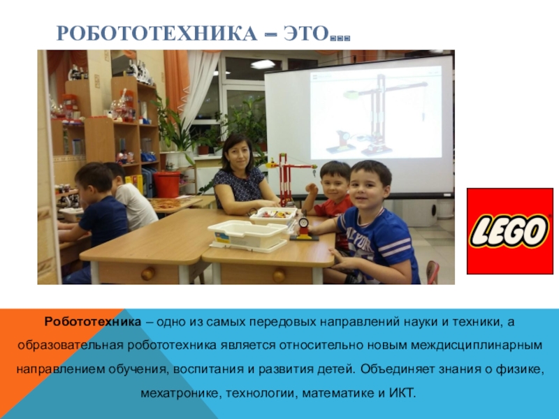 образовательная робототехника является относительно новым междисциплинарным направлением обучения, воспитания и развития детей. Объединяет знания о физике, мехатронике, технологии, математике и ИКТ.