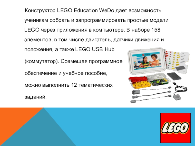 Слайд 10 Конструктор LEGO Education WeDo дает возможность ученикам собрать