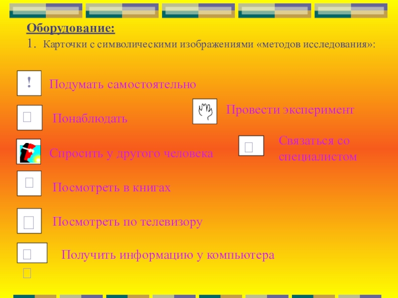На данном этапе проходит подготовка к исследовательской деятельности. Класс выдвигает проблемы, а учитель записывает или вывешивает их на доске (не более 5-7 проблем). Например:
