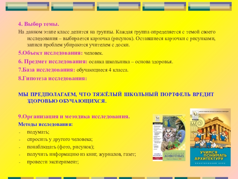 6. Предмет исследования: осанка школьника – основа здоровья.