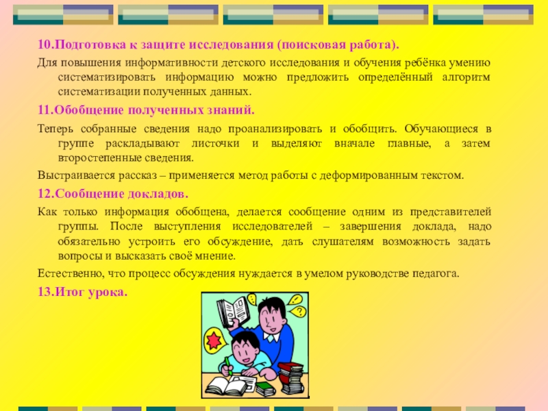 Слайд 1010.Подготовка к защите исследования (поисковая работа).