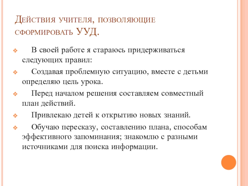 Слайд 2Действия учителя, позволяющие сформировать УУД.