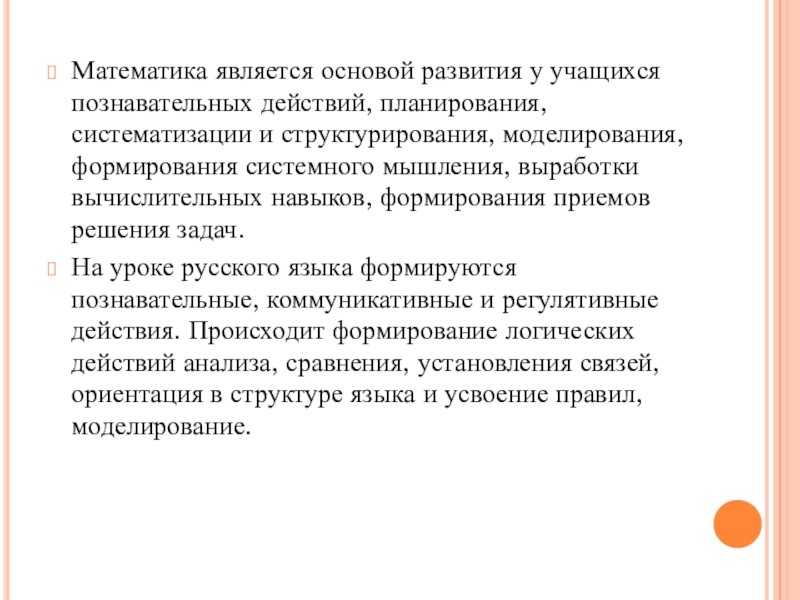 Слайд 5Математика является основой развития у учащихся познавательных действий, планирования, систематизации и