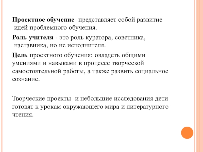 Слайд 13Проектное обучение представляет собой развитие идей проблемного обучения.