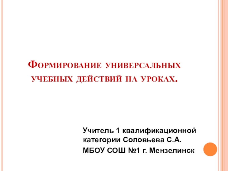 Слайд 1Формирование универсальных учебных действий на уроках.