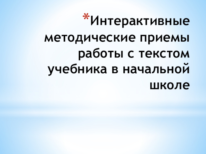 Слайд 1Интерактивные методические приемы работы с текстом учебника в начальной школе