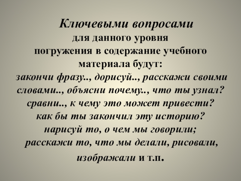 закончи фразу.., дорисуй.., расскажи своими словами.., объясни почему.., что ты узнал? сравни.., к чему это может привести?