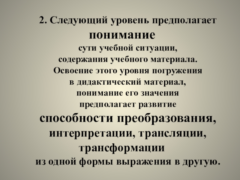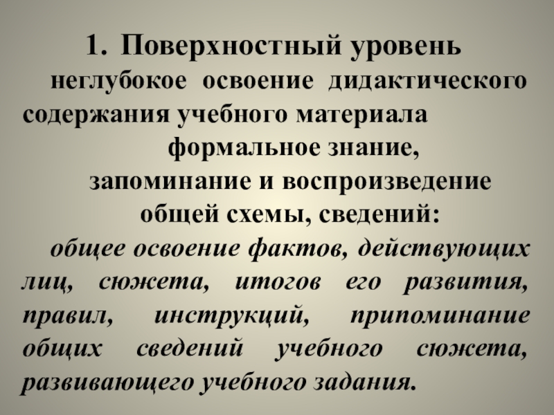 общее освоение фактов, действующих лиц, сюжета, итогов его развития, правил, инструкций, припоминание общих сведений учебного сюжета, развивающего учебного задания.