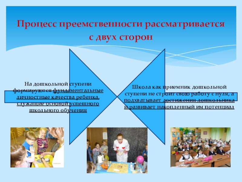 Школа как приемник дошкольной ступени не строит свою работу с нуля, а подхватывает достижения дошкольника и развивает накопленный им потенциал