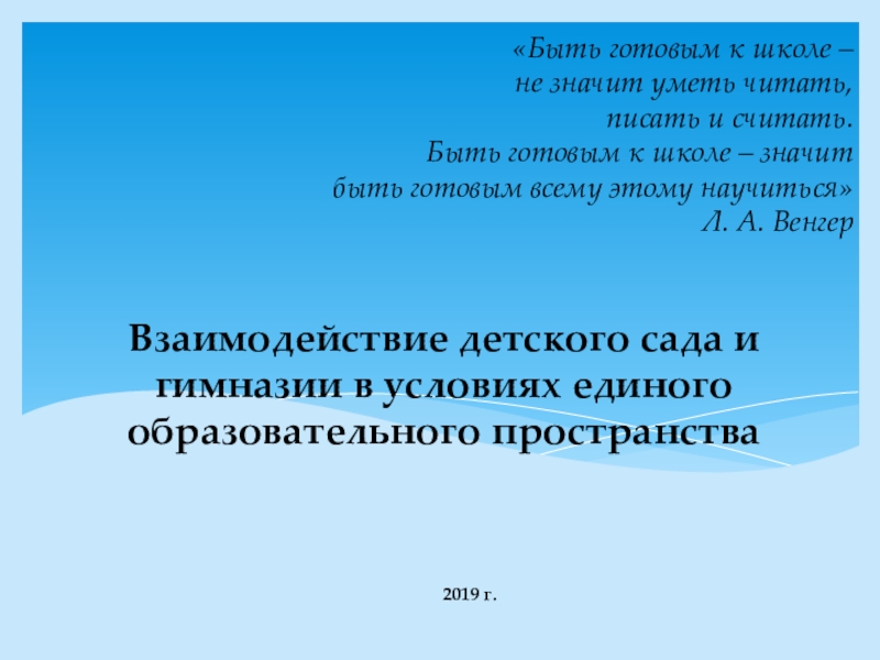 Взаимодействие детского сада и гимназии в условиях единого образовательного пространства