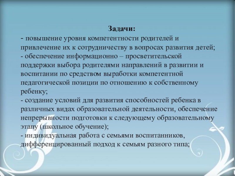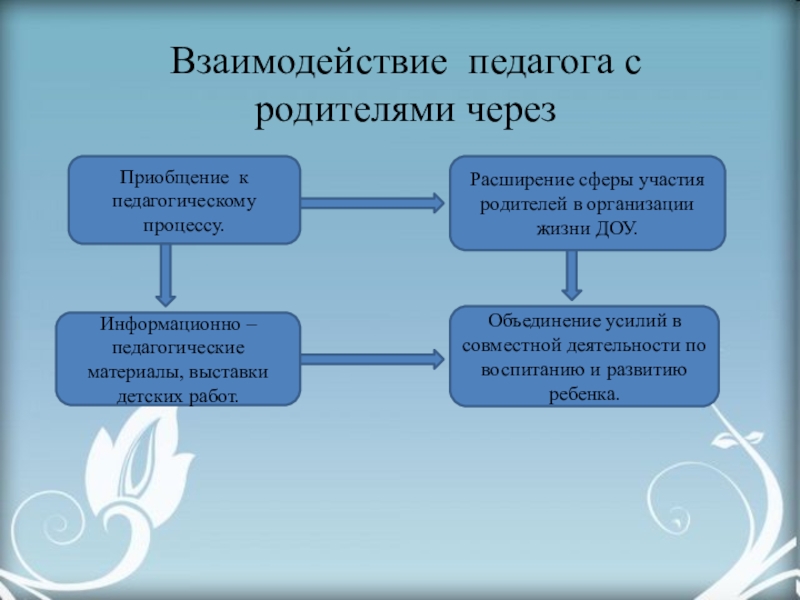 деятельности взрослых и детей в дошкольном учреждении и в семье, подход к родителям как к активным субъектам образовательного процесса.