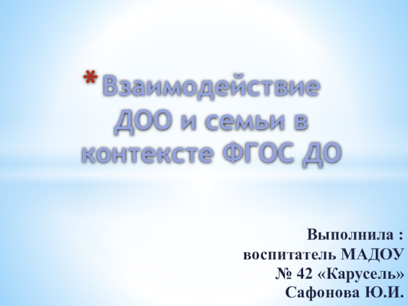 Взаимодействие ДОО и семьи в контексте ФГОС ДО