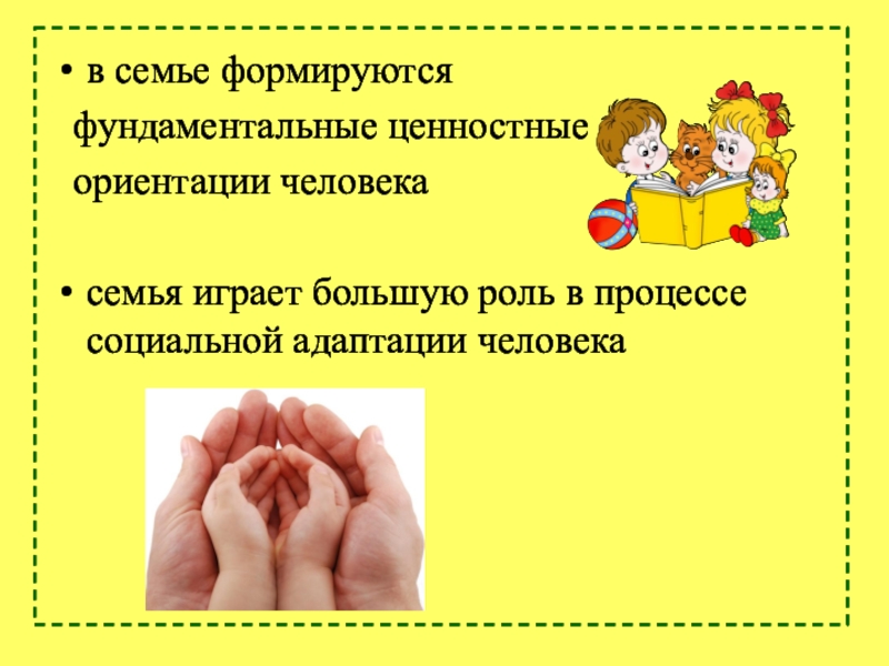 семья обеспечивает физическое и эмоциональное развитие человека;