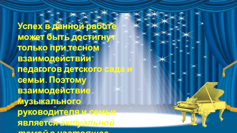 педагогов детского сада и семьи. Поэтому взаимодействие музыкального руководителя и семьи является актуальной темой в настоящее время.