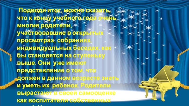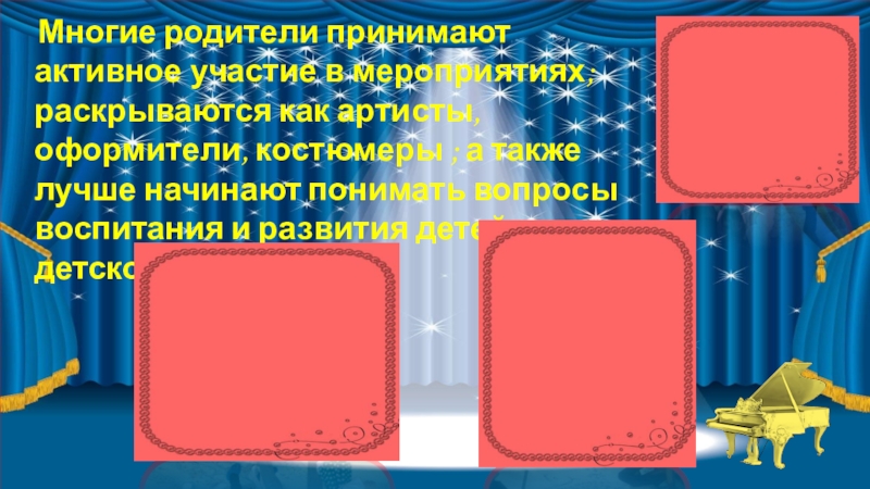 Слайд 26 Многие родители принимают активное участие в мероприятиях; раскрываются как артисты,