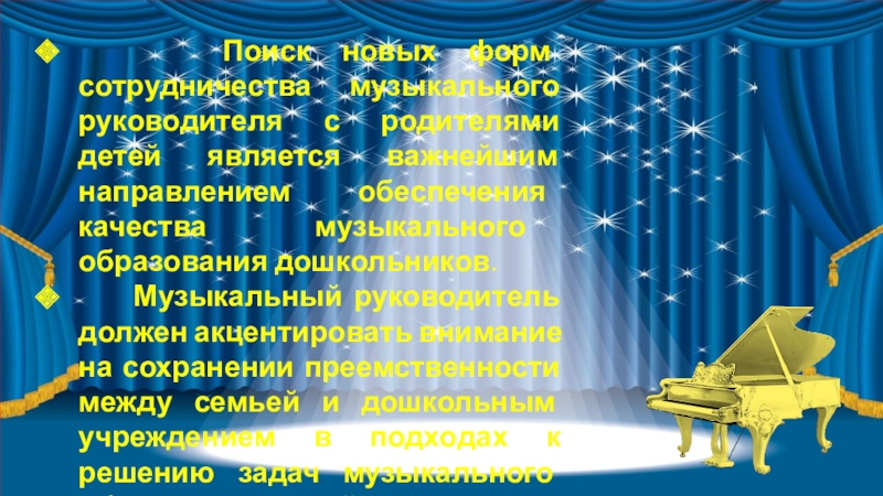 Поиск новых форм сотрудничества музыкального руководителя с родителями. Акцентирование внимания на