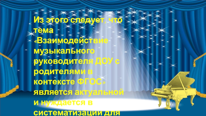 Слайд 31Из этого следует, что тема «Взаимодействие музыкального руководителя ДОУ с родителями