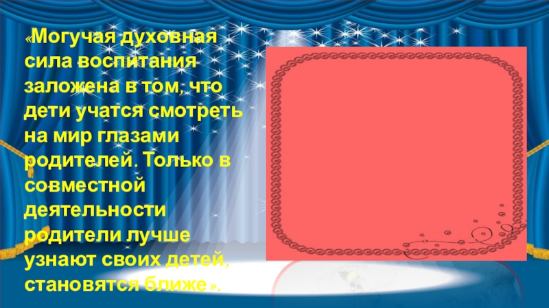 Слайд 2«Могучая духовная сила воспитания заложена в том, что дети учатся смотреть