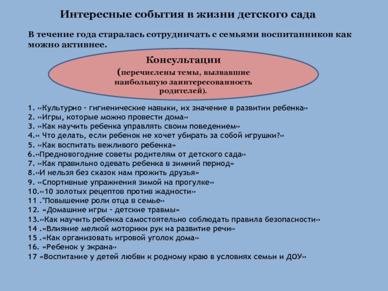 (перечислены темы, вызвавшие наибольшую заинтересованность родителей).