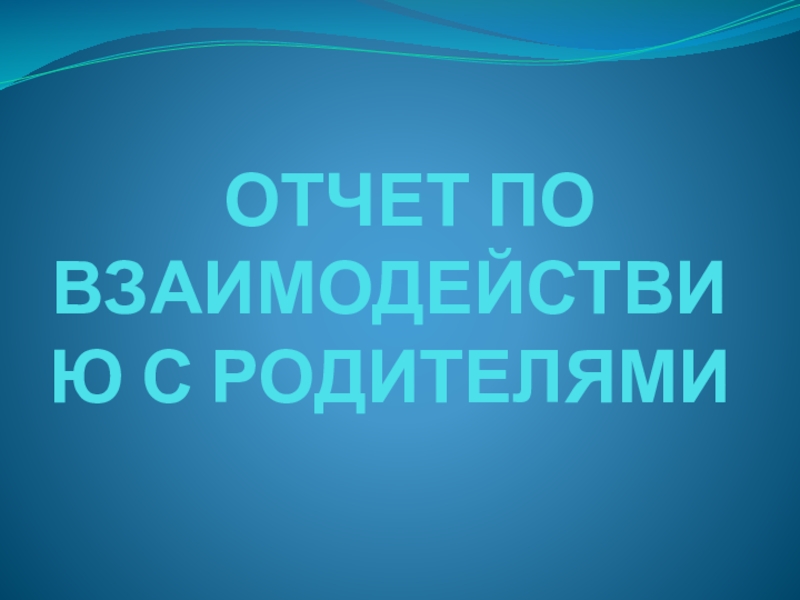 Слайд 1 ОТЧЕТ ПО ВЗАИМОДЕЙСТВИЮ С РОДИТЕЛЯМИ