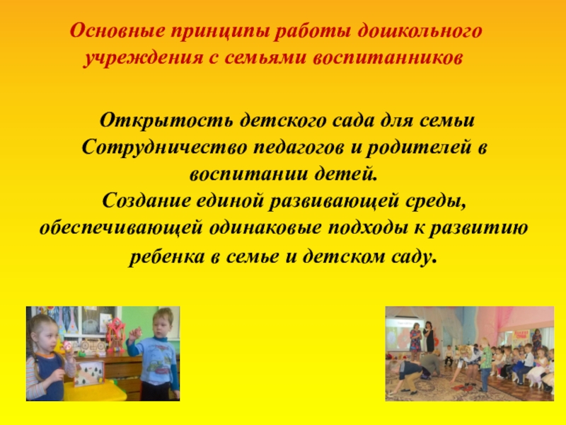 Основные принципы работы дошкольного учреждения с семьями воспитанников