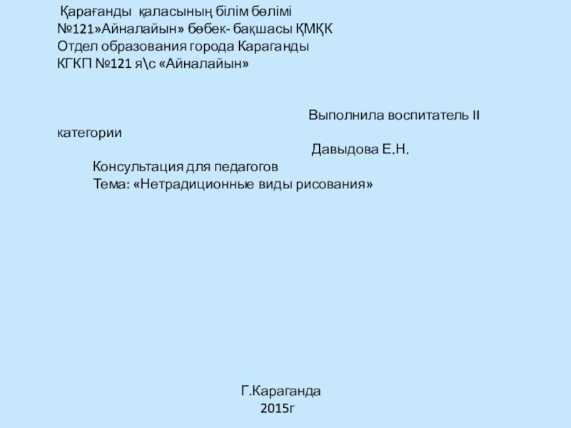 Қарағанды қаласының білім бөлімі №121»Айналайын» бөбек- бақшасы ҚМҚК