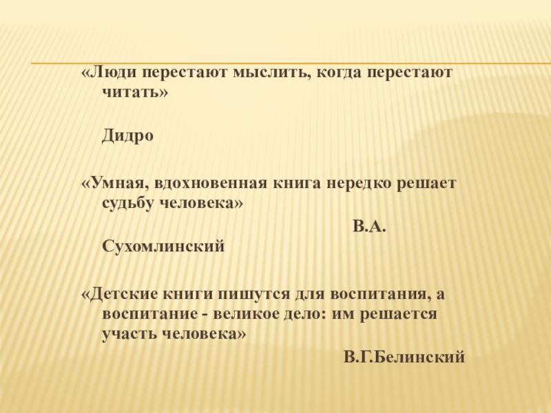 Слайд 2«Люди перестают мыслить, когда перестают читать»